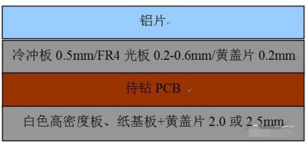 3)加工時(shí)快鉆設(shè)定抬起高度值為≥6mm,鉆入墊板的深度設(shè)定為:0.6~0.8mm(即控深值=板厚+鋁板厚0.15mm+高頻板厚度+0.5mm);